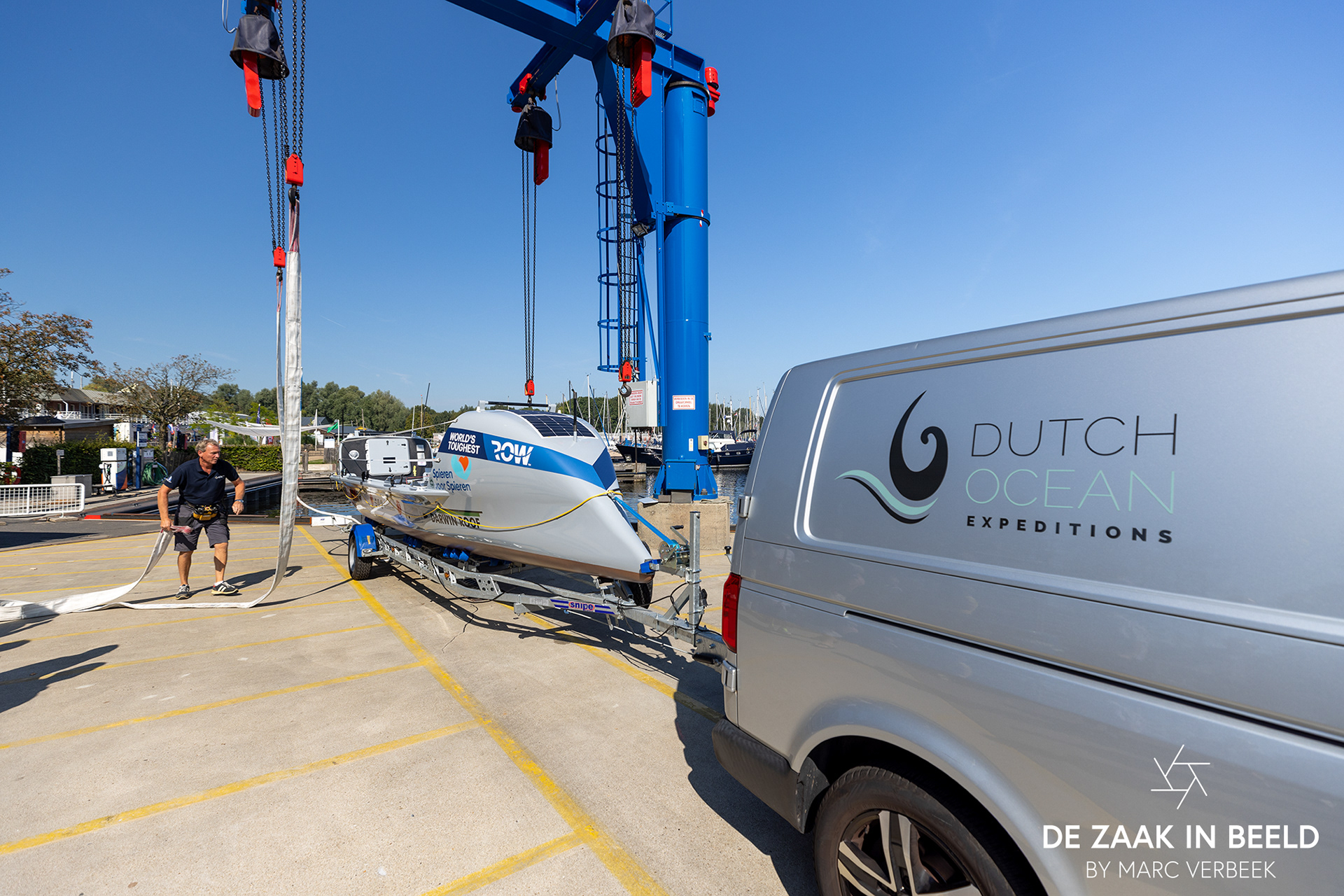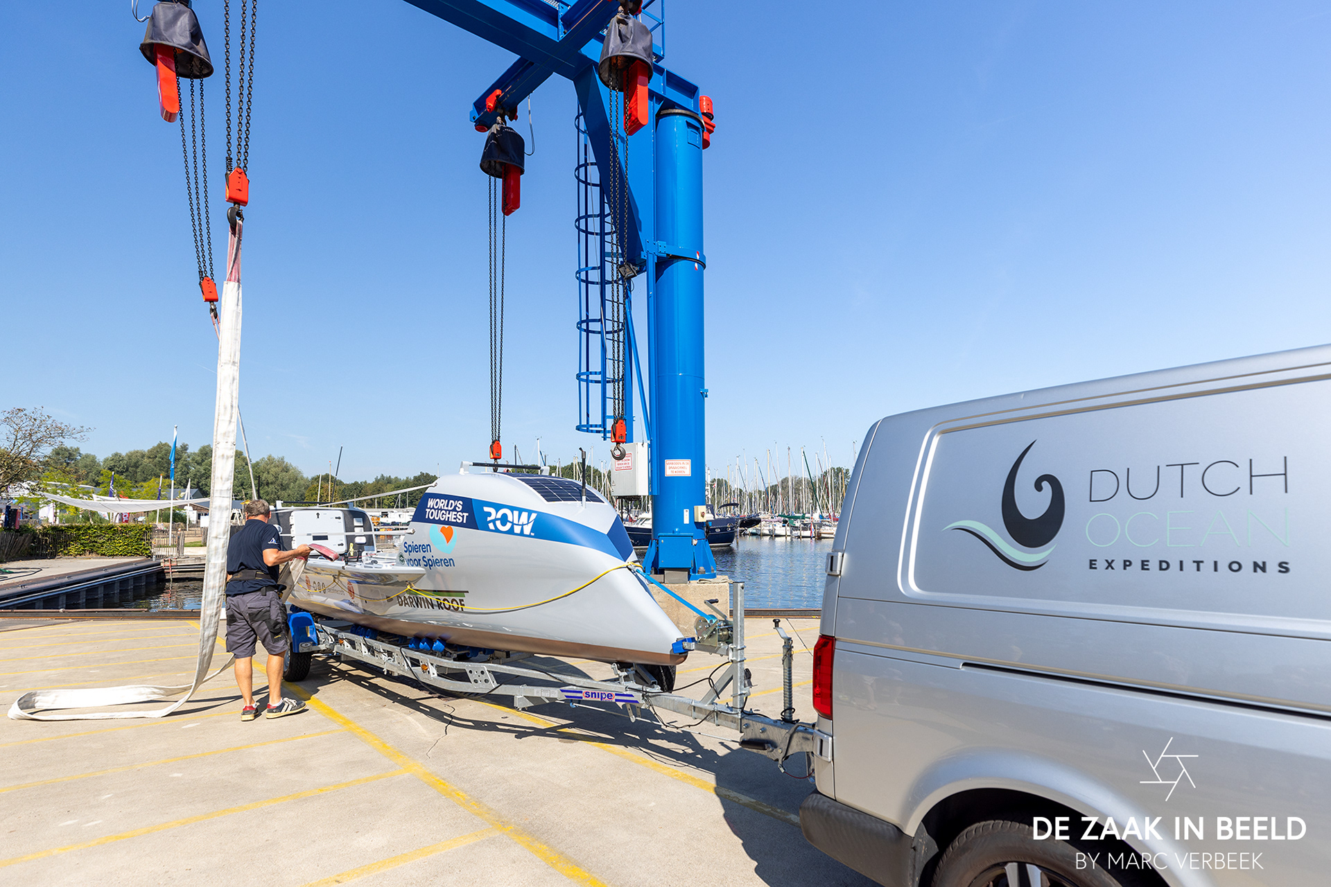 Te water laten oceaan roeiboot jachthaven Naarden 28 augustus 2024